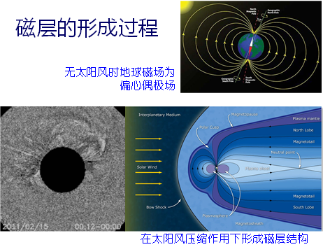 地球有磁場(chǎng),但在太陽(yáng)風(fēng)(帶電粒子)的吹動(dòng)下,地球磁場(chǎng)變成現(xiàn)在的樣子。太陽(yáng)的輻射產(chǎn)生光化學(xué)作用,高層的電離層以及接近地面的大氣等,都受到了影響。中高層大氣位于地球上方30-100公里,這里空氣稀薄、開(kāi)始電離、熱源和熱匯復(fù)雜。電離層位于地球上方60-1000公里,這里的空氣部分電離、有中性和帶電粒子共同作用、影響無(wú)線電波。磁層位于地球上方1000公里到幾十個(gè)地球半徑,這里的空氣完全電離、空間等離子體完全受磁場(chǎng)控制。