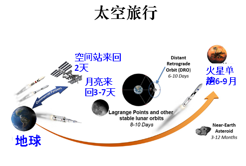 人類的太空旅行,不久就會(huì)實(shí)現(xiàn)。從下圖可以看到去各個(gè)目的地的時(shí)間。
