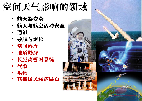太陽(yáng)上出現(xiàn)的耀斑和日冕物質(zhì)的拋射等劇烈活動(dòng),給地球磁層,電離層和中高層大氣,衛(wèi)星運(yùn)行和安全,以及人類健康,帶來(lái)嚴(yán)重影響和危害,通訊也會(huì)受到損害。人們把這種由太陽(yáng)活動(dòng)引起的短時(shí)間尺度的變化,稱之為空間天氣(大于30公里)。