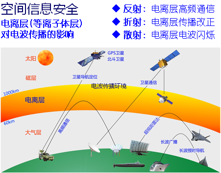 無(wú)線電波的傳播依賴于電離層,它們要么在電離層反射、要么穿過(guò)電離層、要么在電離層折射。電離層的變化就影響無(wú)線電波的傳播。人類需要通過(guò)各種模型的計(jì)算,對(duì)電離層傳播進(jìn)行改正,保證無(wú)線電通訊不受影響,保證定位的精度。