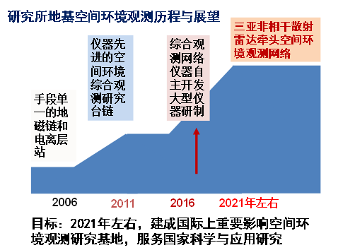 空間環(huán)境觀測(cè)臺(tái)鏈的發(fā)展走過(guò)了很長(zhǎng)的道路。從上世紀(jì)80年代,就開(kāi)始建地磁臺(tái)鏈,2006年,地磁臺(tái)鏈與武漢的電離層觀測(cè)站進(jìn)行整合,2011年,建起空間環(huán)境的綜合觀測(cè),并正式運(yùn)行。目前,正發(fā)展我們自主研制的觀測(cè)儀器。我們希望在2021年建成國(guó)際上的空間環(huán)境觀測(cè)臺(tái)鏈的觀測(cè)基地,服務(wù)于國(guó)家的科學(xué)和應(yīng)用研究。