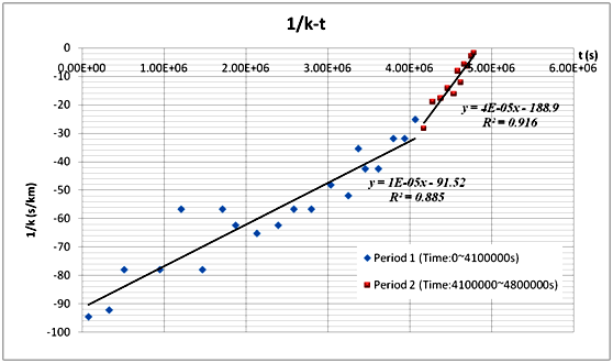 于是, 通過密集地在曲線上取點然后通過Excel軟件錄入并處理其t和 h坐標, 我們可以近似得到曲線在相應(yīng)點上的切線斜率k. 進一步地, 通過建立k和1/t之間的線性回歸模型, 我們可以解決出A和B. 并通過求估計高度與實際高度的差的平均值, 我們可以得C. 綜上我們可以得到以下的密度-高度模型: